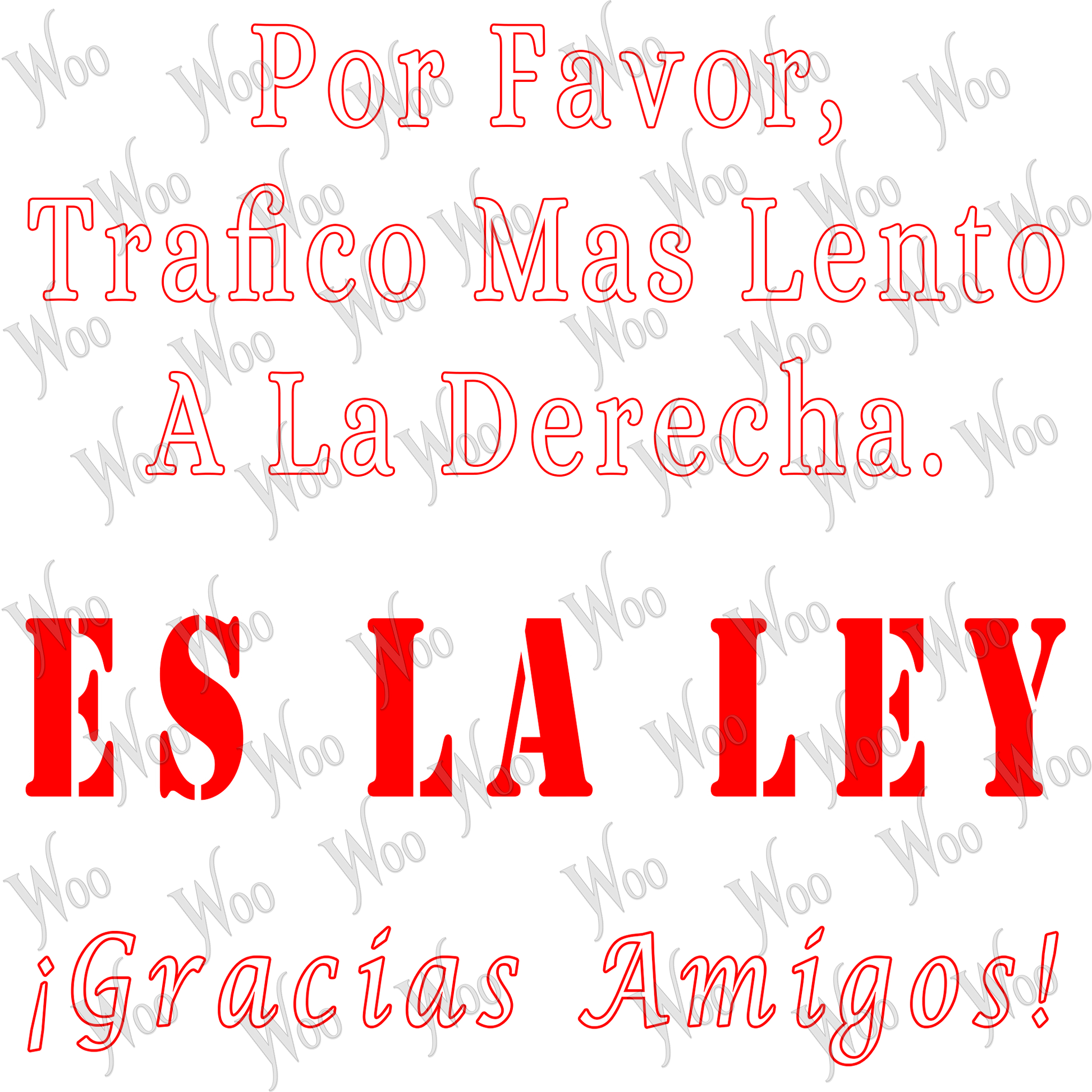 "Por favor, trafico mas lento a la derecha. Es la ley. Gracias Amigos!"